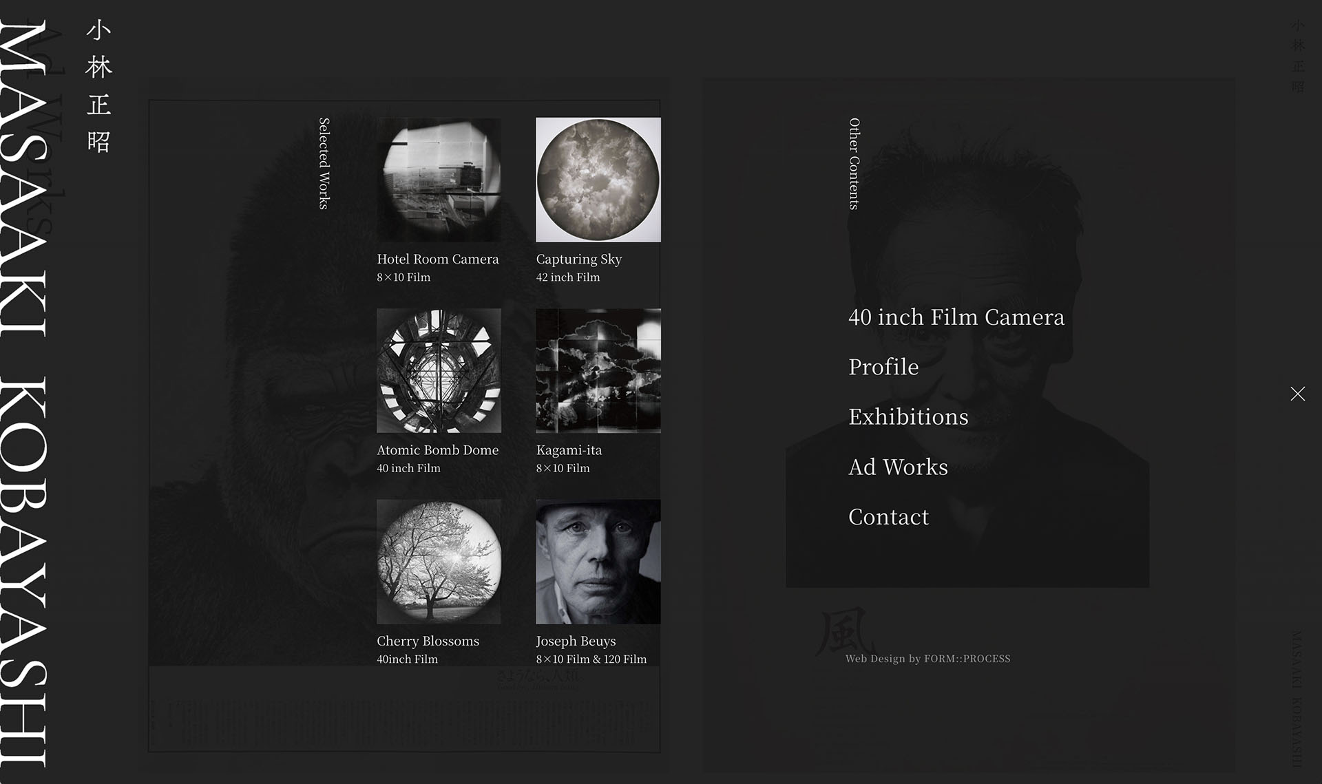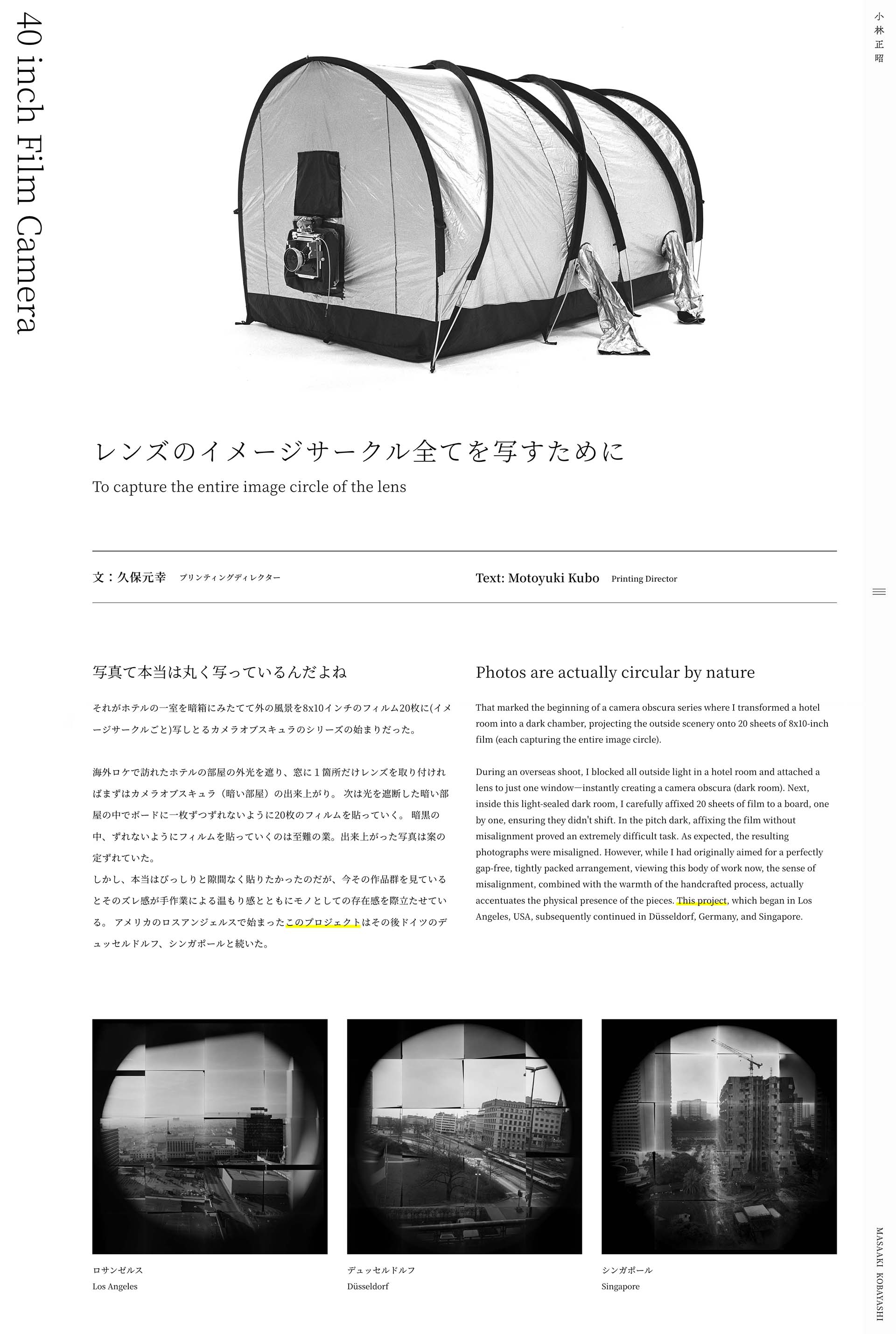 写真家 小林正昭(1941-2023)のパーソナルな作品を中心に、実験的な創作活動の記録をアーカイブしたオフィシャルサイト。レンズのイメージサークルそのものを印画紙に焼き付けようと挑み続けた稀有な創作スタイルをドキュメントした内容となっている。