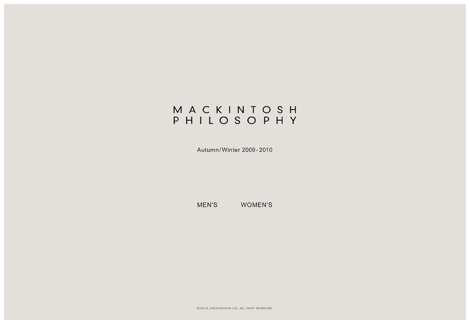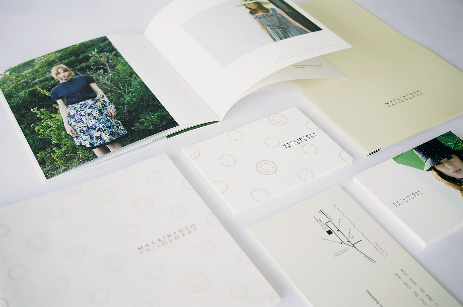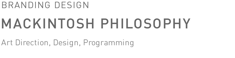 アパレルブランド「MACKINTOSH PHILOSOPHY」の新規ブランドとして立ち上げ時のカタログ、ショッパー、WEBサイト、プレス資料などを含めた様々なブランディングツールのデザイン。店舗デザインの方向性や、シーズンコレクションにおけるイメージカットの撮影ディレクションから行っている。コート裏地に使用されているパターンをアイコニックに用いながら、イギリスのオーセンティックな品格ある世界観を演出している。