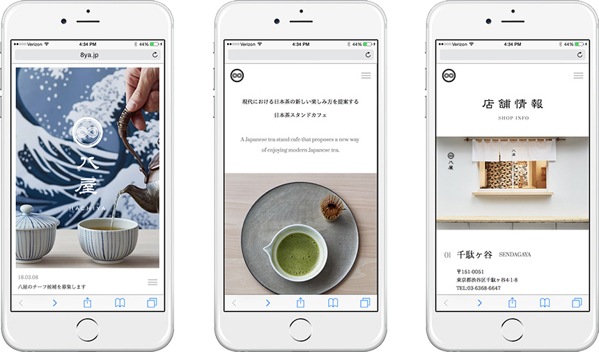 株式会社フェイスネットワークが展開する新しいスタイルのティースタンド「八屋」のWEBサイト。和とコンテンポラリーが融合した洗練された世界観を演出。